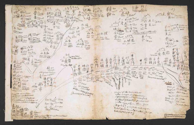 •    A hand-drawn map of China by Shen Fuzong, the first recorded Chinese person to visit the UK in 1687