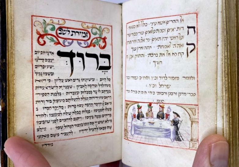 The manuscript contains Sabbath hymns, the prayer for the New Moon, and Perek Shirah, an ancient hymn of praise in which every created thing – from the animate to the celestial – thanks God for its existence.