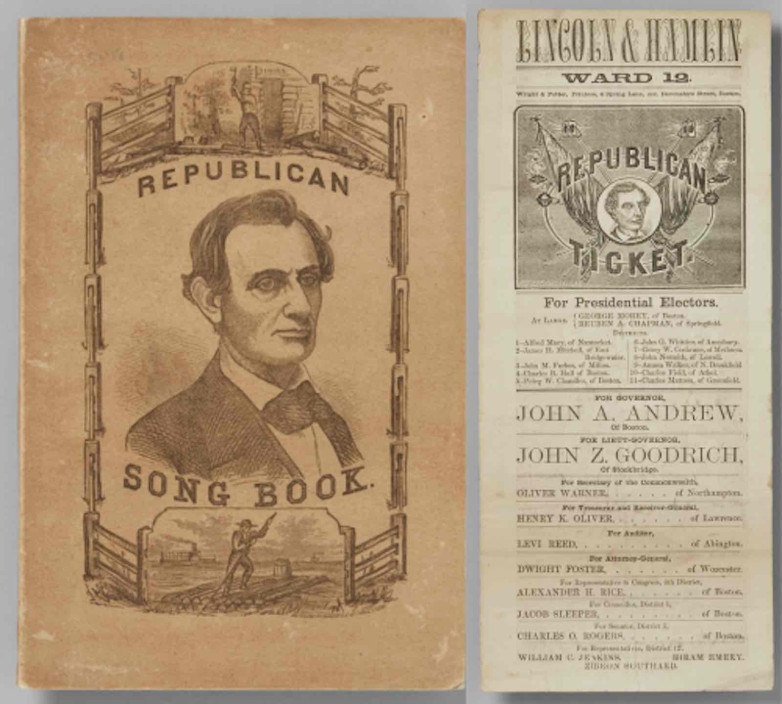 Republican Song Book (New York: Thayer & Eldridge, 1860) and Lincoln & Hamlin / Ward 12 (Boston: Wright & Potter, 1860). Courtesy of David M. Rubenstein.