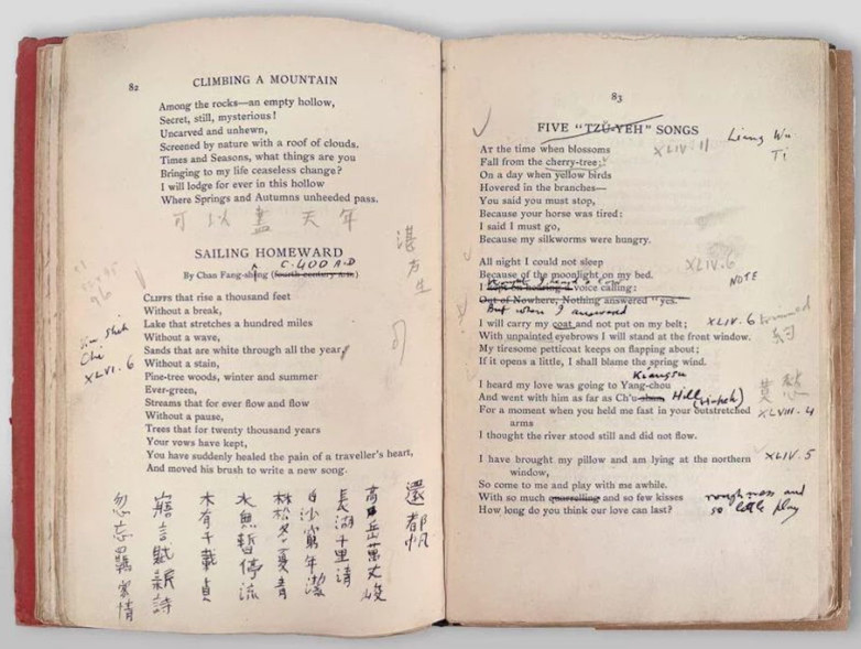 Arthur Waley's copy of 170 Chinese Poems, featuring manuscript notes in English and Chinese offered by Henry Sotheran at Chelsea Book Fair