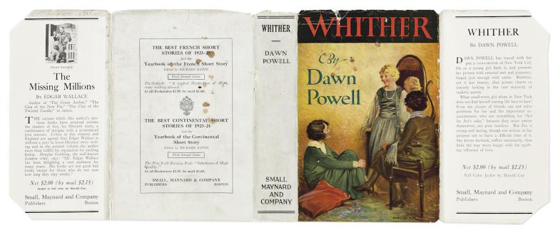 Dawn Powell, Whither, first edition with unrestored pictorial dust jacket, 1925. Estimate $6,000-9,000