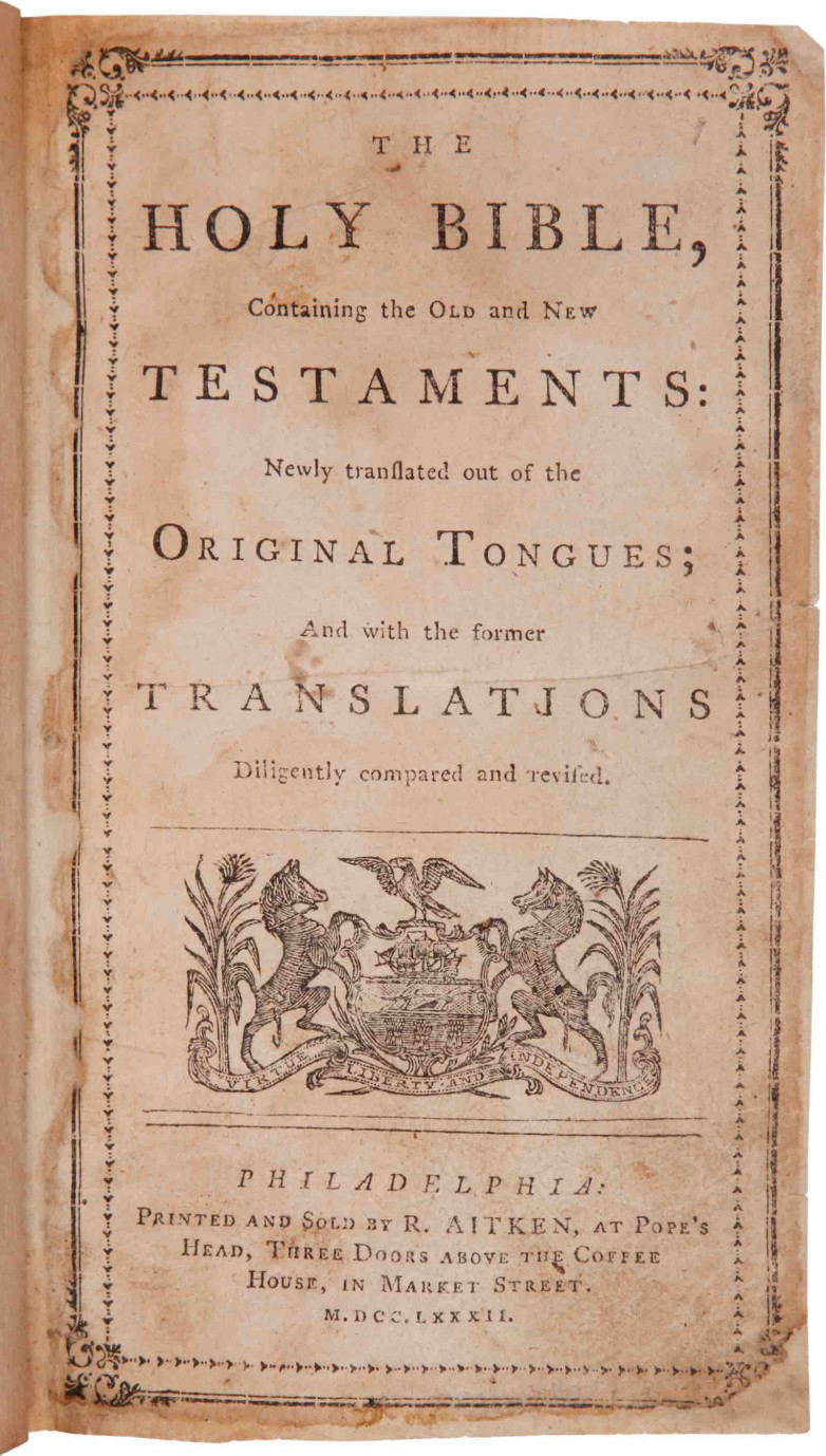 The Aitken Bible, the First English Bible printed in America, is among the offerings in William Reese Company's first printed catalogue issued under its new ownership by New York-based James Cummins Bookseller and London’s Peter Harrington.