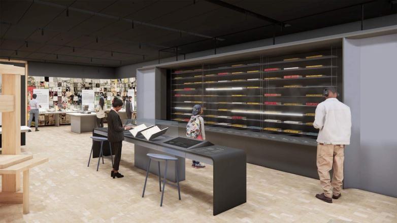 Shakespeare Exhibition Hall with printing press at the Folger rendering