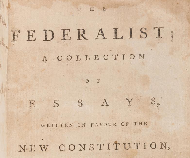 The Federalist: A Collection of Essays, Written in Favour of the New Constitution, as Agreed Upon by the Federal Convention, September 17, 1787 (New York, 1788). Price Realized: $175,000