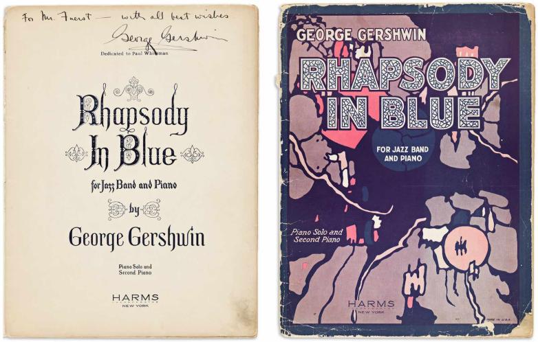 George Gershwin, piano solo and second piano score for Rhapsody in Blue, signed and Inscribed on title-page. Estimate: $6,000 - $9,000