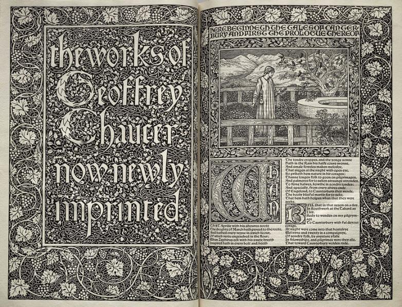 The Works of Geoffrey Chaucer now newly imprinted, edited by F.S. Ellis; ornamented with pictures designed by Sir Edward Burne-Jones (1896).