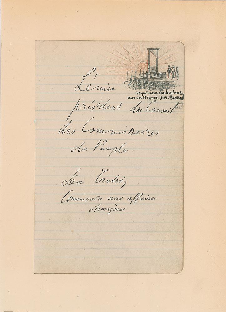 Lenin and Trotsky signatures from a notebook previously owned by Robert de Flers.