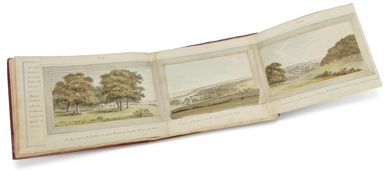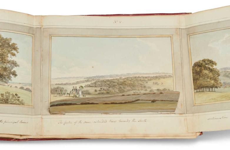 Humphry Repton's "Red Book" of landscape designs for Stratton Park, Hampshire, which sold for £100,800 at Christie's on December 13 (detail).