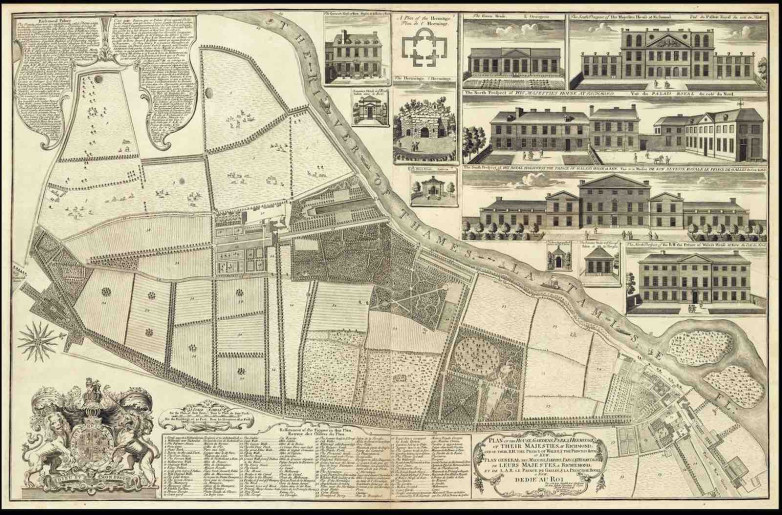 John Rocque’s Plan of The House, Gardens, Park & Hermitage of Their Majesties at Richmond; and of their R.H. the Prince of Wales & the Princes Royal at Kew