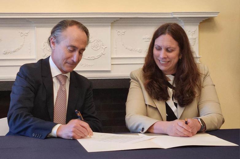 Howard Hochhauser, Chief Financial Officer and Chief Operating Officer at Ancestry, signs an official agreement with Dr. Colleen Shogan, Archivist of the United States, at a signing event at the National Archives Building