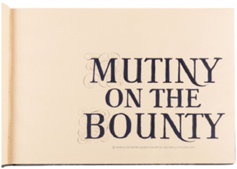The trailer for the film begins with a log book, its pages turning to reveal a page reading “The Greatest Adventure Ever Lived…” followed by another that goes on “Becomes the Greatest Adventure Ever Filmed!” and then finishes on “Mutiny on the Bounty…”.