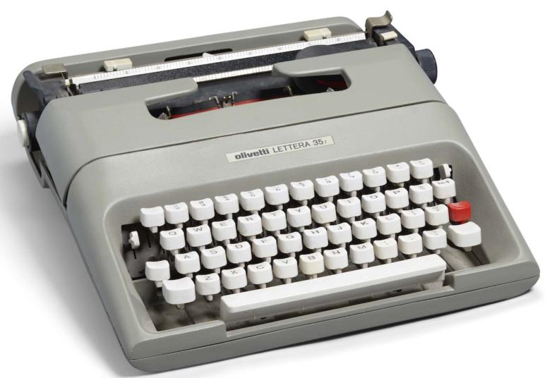 An Olivetti Lettera 35 portable manual typewriter used by Hollywood star Olivia de Havilland while she lived in Paris to write with fans and friends is on sale at Bonhams as part of its The Collection of Olivia de Havilland auction ending May 23. It comes with a letter signed by the actor discussing her plans to continue writing her autobiography