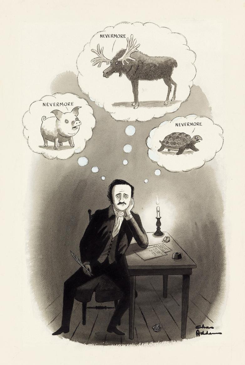 Poe Cartoon by Charles Addams Leads Swann’s Sale of Illustration Art