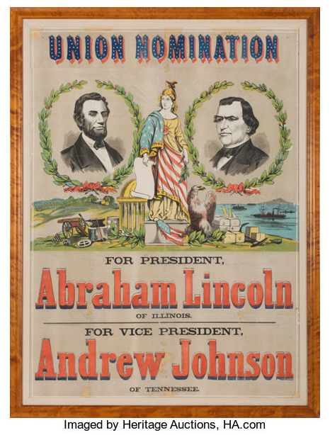 Large 1864 Lincoln-Johnson campaign poster, offered at Heritage Auctions this week.