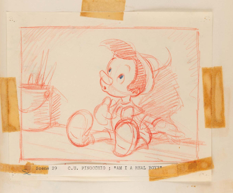 Detail from a Disney director's "continuity sketch book" used for the 1940 film Pinocchio, offered at RR Auction on August 13.