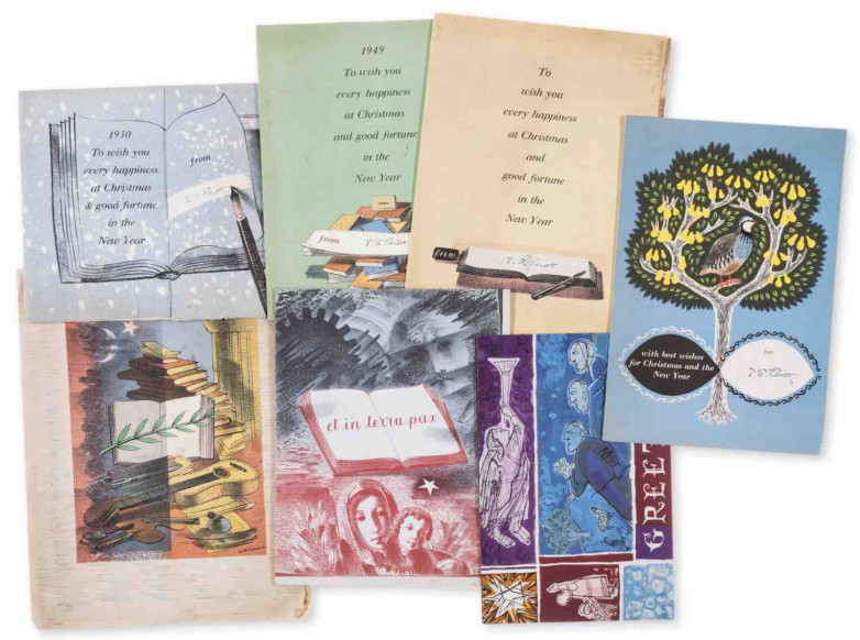 A group of 14 Christmas cards signed by poet T. S. Eliot comes up for sale at Forum Auctions on September 17.