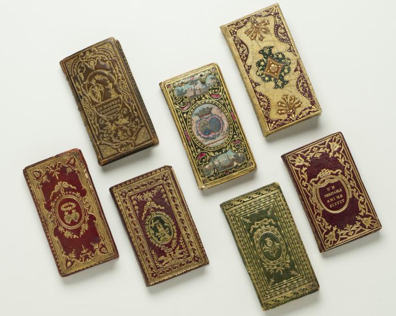 Various bindings on exhibition in Bound for Versailles: The Jayne Wrightsman Bookbindings Collection at the Morgan Library.