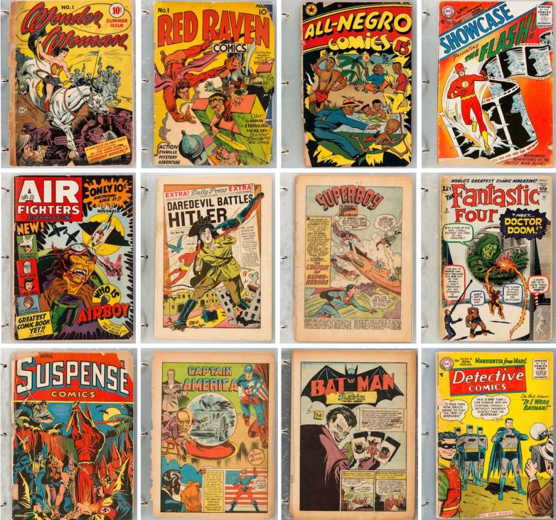 Contained in these binders are dozens of No. 1’s, among them Captain America, Batman, The Avengers, Green Lantern, X-Men, Fantastic Four. Hundreds of first appearances, including those of Captain Marvel, Iron Man, the Justice Society of America, the Martian Manhunter. Countless origin stories. And some of the most significant titles published, including 1947’s All-Negro Comics No. 1, whose creator Orrin Cromwell Evans hired only Black writers and artists.