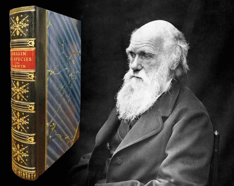 Book image Courtesy of Ken Sanders Rare Books / Charles Darwing Courtesy of Wikipedia.