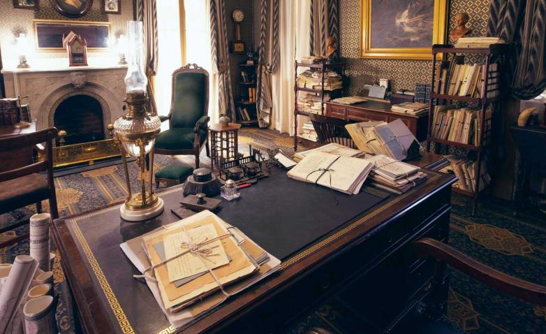 The Dickinson team made an exact facsimile of Edward Dickinson’s study, complete with antique furniture and handmade reproductions of letters, documents, and maps.