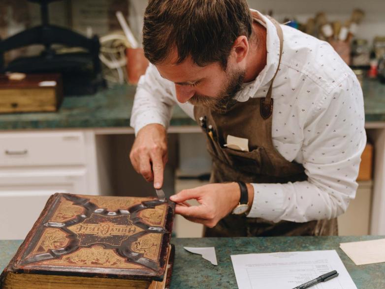 The bindery at the Charleston Library Society promotes book preservation through meticulous conservation and hands-on teaching inspired by its historic collection.