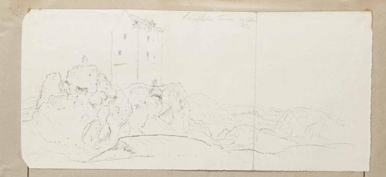 Skene’s sketches of Smailholm Tower, a dramatic structure once owned by Scott’s ancestors.
