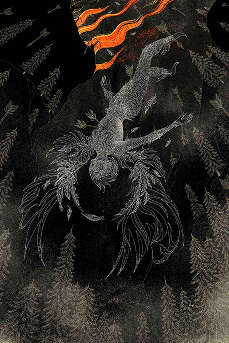 Winner Cristina Bencina, an artist and illustrator based in Colorado, receives a £2,000 cash prize, £500 worth of Folio Society books and a portfolio review with the Folio Society Art Directors. Her work was inspired by Ursula K. Le Guin’s description of a ritual persecuting the select few born with the ability to fly in a society of feathered people, who are thrown from a cliff and attacked with arrows: “Whether she flies or falls, all the men of the tribe, screaming with excitement, shoot at her with bow and arrow.” Intricately detailed and balanced in composition, Bencina’s illustration was selected for its imaginative depiction of the persecuted Flier.